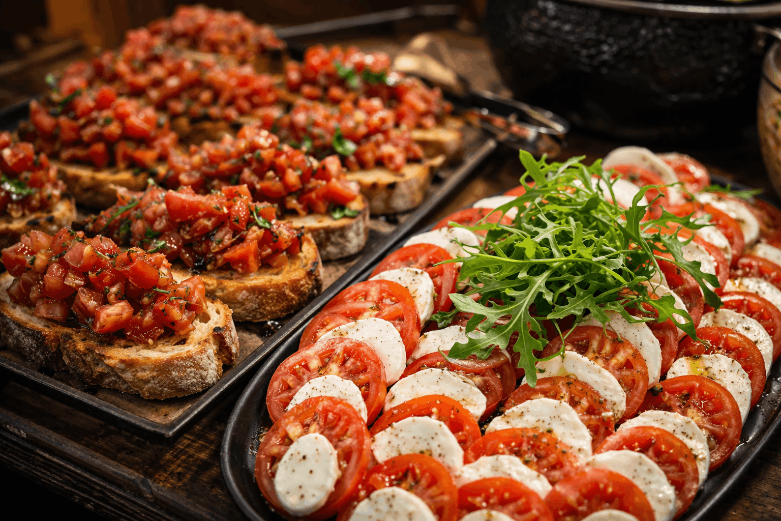 Zum Start begrüßen wir euch mit einem prickelnden Prosecco, bevor euch ein abwechslungsreiches Buffet mit frischen Vorspeisen wie Tomate-Mozzarella und knuspriger Bruschetta, raffinierten Beilagen und herzhaften BBQ-Spezialitäten erwartet.